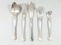 Lot CHRISTOFLE de couverts signés en métal argenté du début du XXe siècle comprenant :- 8 fourchettes à huîtres RUBANS. Signées. Poinçon 1862-1935. - 6 couverts à poisson et 6 couverts à entremets modèle JAPONAIS. Poinçon 1862-1935. Rayures. Non chiffrés.