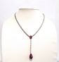 Demi-parure en or gris et or noirci 750 mil, comprenant un collier et une paire de pendants d’oreilles, sertis de pierres imitation blanches et rouges. Systèmes pour oreilles percées. (Longueur collier : 41cm ; Hauteur pendants : 5,5cm environ). (Soudures, réparations, plusieurs pierres manquantes). 45,2 g. brut