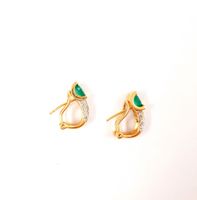Paire de boutons clips d’oreilles 2 ors 750 mil ornés d’une émeraude et pavés de diamants taille brillant. Systèmes pour oreilles percées. (Hauteur : 1,6cm environ). (Tiges légèrement déformées). 4,8 g. brut