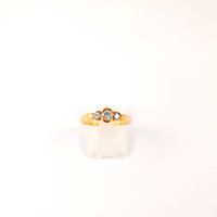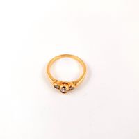 Bague en or 750 mil. sertie de 3 diamants brillantés (0,15 carat environ et 0.05 carat). (Légère déformation). (TDD : 52). 3,6 g. brut.