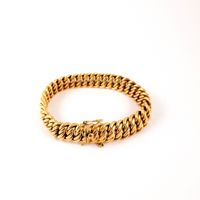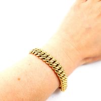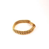 Bracelet à maille gourmette en or 750 mil., avec huit de sécurité. (Petits chocs, chainette de sécurité manquante). (Longueur : 19 cm). 24,3 g. brut. 24,3 g.