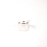 Bague solitaire en platine 950 mil. serti d’un diamant taille émeraude de 0,05 carat environ. (TDD : 53). 3,9 g. brut