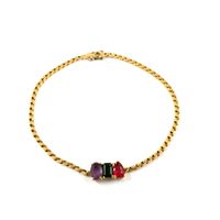 Bracelet H.STERN en or 750 mil. à maille gourmette centré d’une tourmaline rose taille poire, d’un péridot taille émeraude, et d’une améthyste taille ovale, fermoir cliquet avec double huit de sécurité. Poinçon de maître. (Longueur : 21 cm environ). (Egrisures, pierre cassée, cliquet défectueux). 8,4 g. brut