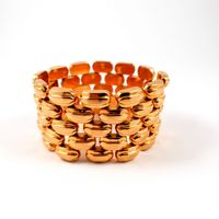 Bracelet ruban en or 750 mil. à maille fantaisie, fermoir double cliquet. (Longueur : 18,5 cm environ) (Largeur : 3,7 cm). (Petites usures). 103,4 g.
