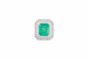 Bague en or gris 750 millièmes ornée au centre d'une d'une pierre de synthèse verte rectangulaire à pans coupés dans un triple entourage de diamants ronds de taille brillant. (Égrisures et légers manques)Tour de doigt : 53½Poids brut : 8,9 g