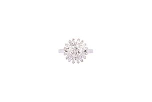 Bracelet rigide ouvrant en or jaune 585 millièmes, le centre à décor d'agrafes et d'enroulements, entièrement serti de diamants taillés en rose un plus important. (Usures). XIXème siècle. Diamètre intérieur : 5,8 mm. Poids brut : 20,6 g.