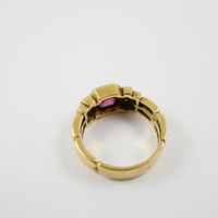 Bague godronnée en or 750 mil. centrée d’un grenat