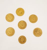 Lot de 7 pièces de monnaies en or 900 mil. dont 1