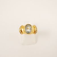 Bague en or 750 mil. ornée d’une topaze bleue oval