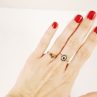 Lot deux ors 750 mil. composé d’un collier (longueur : 45,5 cm environ), d’un pendentif-croix (diamant 8/8) (hauteur : 3,2 cm), et de deux bagues (saphirs, diamants 8/8, deux pierres imitation bleues, roses) (TDD : 60 et 51). 9 g. brut