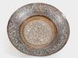 SYRIE ou EGYPTE, fin XIXe siècle-début du XXe siècle : bassin en cuivre étamé à décor argent, rinceaux feuillagés et inscriptions coraniques en Thuluth (la mention centrale signifie Mashallah, selon la volonté de Dieu) Le fond noirci. Diam. 37 cm. H. 8.3 cm. Déformations et rayures d’usage. TBE de fraicheur.
