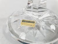 VILLEROY & BOCH, XXe siècle : fontaine à eau de vie en cristal taillé sur piédouche rond le corps ovoïde. Le robinet en métal argenté. Le bouchon à longue graine navette taillée à pans. H. 38.5 cm. Diam. à la base : 9.7 cm. Micro-rayures. TBE. Non signée. Etiquette de la maison défraichie.