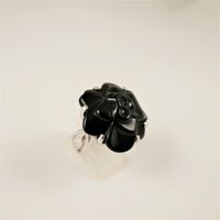 CHANEL n°601644 – Bague « Camélia » en or gris 750 millièmes et céramique noire. T.58. Poids brut :