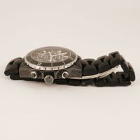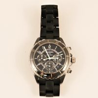 CHANEL Swiss made n°Z.N.41968 – Montre “J12” en céramique noir, cadran 42mm, lunette tournante, chrono à trois compteurs, dateur à quatre heure, mouvement automatique, aiguilles et index luminescents, bracelet en résine façon bois articulé sur boucle déployante. (Boucle déployante défectueuse).