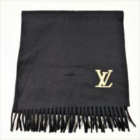 Echarpe Louis VUITTON en 100% cachemire noir, bord frangé agrémentée du logo de la maison. (Très bon état)