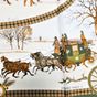 HERMES Paris. Carré en twill de soie imprimé, titré "L'hiver en poste", signé Ledoux, bordure verte. (Salissures, bon état).