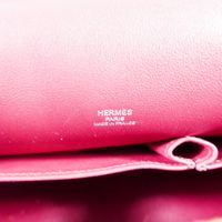 HERMES Paris made in France année 2011. Sac « Jypsière » 28cm en veau swift rubis, attaches et fermoir en métal argenté palladié, anse bandoulière amovible réglable. Très bon état (légères usures, traces).