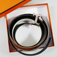 HERMES Paris Made in France. Lot de 3 ceintures : en cuir reversible orange et noir (taille 105) ; en cuir jean reversible blanc (taille 110) ; en cuir togono noir reversible box marine (taille 110). Boucle constance en métal palladié.