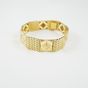 Bracelet ruban en or 750 mil à décors géométriques, avec huit de sûreté (longueur : 18 cm, largeur : 1,7 cm). 22,9 g.