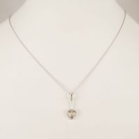 Collier et pendentif « cœur » en or gris 750 mil., le pendentif rehaussé de diamants brillantés. (Longueur : 41,5 cm). (Hauteur pendentif : 2 cm environ). 2,1 g. brut