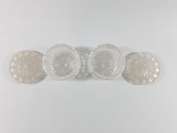 BACCARAT vers 1900, paire de pots de toilette ronds en cristal taillé blanc transparent. Signature moulée à l’intérieur, étiquettes papier Baccarat « aux verres et à la carafe » et étiquette du Bon Marché sur l’un. Hauteur : 7,5 cm ; diamètre : 8,6 cm.