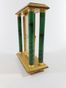 JAEGER-LECOULTRE, pendulette de bureau en bronze et laiton doré, cadran rectangulaire doré à chiffres romains signé, encadré de 4 colonnes détachées en laque verte imitant le marbre. Années 50-60. Dimensions : 19,5 x 14,8 x 7 cm. (Petites traces d’oxydation). On y joint son écrin défectueux.