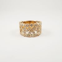 Bague bandeau ajourée GUERIN JOAILLERIE, Collection « Diamants de Rosée », en or rose 750 mil à motifs feuillagés stylisés sertis de diamants taille brillant. Signée. (Largeur anneau : 1cm environ ; TDD : 54). 6,1 g. brut