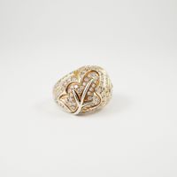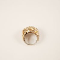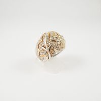 Bague boule en or rhodié et or rose 750 mil à décor de lignes végétales stylisées serties de diamants taille brillant. (TDD : 51). (Usures à l’or, une pierre cassée). 19,6 g. brut
