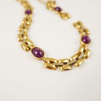 Bracelet en or 750 mil ponctué de racines de rubis cabochons en serti clos. (Longueur : 18cm environ). (Accidenté, fêles). 15,1 g. brut
