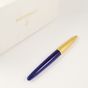 Stylo-plume WATERMAN « Edson » en métal doré et résine émaillée bleue, plume en or 750 mil. 43,3 g. brut. (Avec boîte, écrin usé et document).