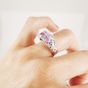 Bague MAUBOUSSIN « Désirez Amour » en or gris 750 mil., ornée d’une améthyste rectangulaire, épaulée d’un pavage de diamants brillantés et d’améthystes rondes de chaque côté, signée et numérotée, accompagnée de son écrin et de sa carte d’authenticité (TDD : 54) (égrisures, serti à revoir). 5,4 g. brut