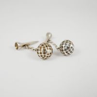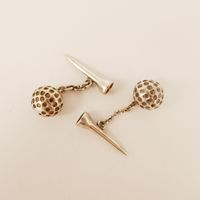 Paire de boutons de manchettes GAETAN DE PERCIN « tee et balle de golf » en argent 925 mil., poinçon de maître (diamètre balle : 1 cm environ). 16 g.