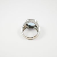 Bague en or gris 750 mil. sertie d’une topaze ovale suiffée en serti clos. (TDD : 53). (Egrisures). 9,6 g. brut