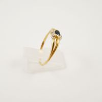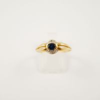 Deux bagues en or 750 mil., l’une sertie d’un diamant brillanté de 0,07 carat (TDD : 57), l’autre d’un saphir taille ovale rehaussé de diamants 8/8. (TDD : 61). (Chocs, égrisures). 3,6 g. brut