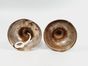 ALLEMAGNE ou AUTRICHE, début du XIXe siècle : paire de bougeoirs en argent 875 mil. à décor de frises de feuilles d’eau et tresses de vannerie, les bases rondes, les fûts tronconiques moulurés et les binets tulipe. Armoiries comtales en applique sur les ombilics. Poinçons polonais de 1920 de garantie 2e titre de Varsovie, hibou dit poinçon au lombard, orfèvre et un autre indéterminé, Déformations, usures, accidents et anciennes restaurations à la jonction de la base d’un fût. Percés à la base et montés à l’électricité en l’état. Poids brut : 667.3 g. H. 24 cm.