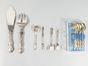 FINLANDE, XXe siècle, Années 1970-1980 : service à dessert en argent 830 mil. de 12 pièces à modèle rocaille chantournée comprenant 7 petites cuillers (L. 11.7 cm), 1 cuiller à sucre et 1 couvert à servir à manches argent fourrés « Romantika » de KULTAKESKUS, 1 petite cuiller même modèle mais d’un autre orfèvre et 1 petite fourchette à piquer florale d’un autre orfèvre. Poinçons finlandais modernes d’orfèvres, de date, de garantie d’état et de titre. 4 boites dont 2 Ossian hopea à Poorvo et 1 Kultakeskus Oy. Poids brut total : 293.2 g dont 127.8 g net. Chiffré JONNA avec différentes dates.Le célèbre designer finlandais TAPIO WIRKKALA (1915-1985) a beaucoup travaillé avec la maison Kultakeskus.