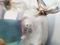 S.F.A.M, fin XIXe siècle-début XXe siècle : service à thé 3 pièces en étain argenté, modèle balustre quadripode à côtes torses et vagues déchiquetées, les anses volute, les bagues en porcelaine, comprenant 1 théière (H. 19.8 cm), 1 sucrier couvert (H. 17.8 cm) et 1 pot à lait (H. 11.6 cm). Poinçon de fabricant à la poignée de main. N° 0257. Rayures et usures d’usage sur les côtes tournantes.