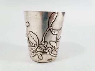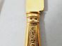 TETARD Frères, XXe siècle ante 1973 : service à dessert et à fruits de 42 pièces en vermeil 950 mil. de style Régence comprenant 12 petites fourchettes, 12 petites cuillers, 12 petits couteaux lames vermeil, 4 pelles à glace et 1 couvert de service à glace. Les tiges à décor en réserve de chutes de culots de fleurs et petits lambrequins. Les spatules à cartouche chantourné non chiffré. Ancienne Minerve 1er titre et poinçon de Maître à la Huguenote (à partir de 1903). Ecrin moderne intérieur velours brun (traces de stylo sur la soie blanche). Poids net : 1163.4 g. Poids brut des couteaux à manches fourrés : 490.7 g. Poids total : 1654.1 g. L. couteau : 17.7 cm. L. Fourchette : 14.2 cm. D’une cuiller : 14.4 cm. TBE.
