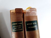 BIBLIOTHEQUE de la PLEIADE (7 volumes) :- GIDE "Journal 1889-1939", "Journal 1939-1949- Souvenirs" et "Romans", NRF, Gallimard, 1955-58. In-12, reliure de l'éditeur.; - SAINT EXUPERY "Oeuvres", NRF, Gallimard, 1957. In-12, reliure de l'éditeur (ex-libris).; - Paul VALERY "Oeuvres", tome I, NRF, Gallimard, 1957. In-12, reliure de l'éditeur.; - VERLAINE "Poésies complètes", NRF, Gallimard, 1942. In-12, reliure de l'éditeur.; - VIGNY "Oeuvres complètes", tome I, NRF, Gallimard, 1955. In-12, reliure de l'éditeur (ex-libris). (Déchirures et manques, sans rhodoïds, ni jaquettes)