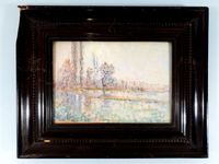 José MINGRET (1880-1969) « Bord de rivière » Technique mixte sur carton, signée en bas à droite. Dimensions (à vue) : 15,5 x 22,5 cm. (Encadrée)