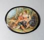 Lot comprenant : - Ecole française du XIXème siècle "Scène galante" Aquarelle sur papier, non signée. Dimensions : 6 x 7 cm. (Encadrée sous verre); - Ecole française du XIXème siècle "Portrait d'homme à la redingote noire" Miniature ovale. Dimensions : 4 x 3,2 cm. Dans un encadrement formant chevalet (accidenté) en velours bordeaux. Dimensions : 8 x 6,8 cm.; - Daguerréotype représentant une jeune femme au col blanc (cliché passé). Dimensions : 7 x 5,8 cm. Dans son écrin en velours et cuir vert. Dimensions : 10 x 18,5 cm.