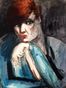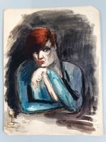 Marcia FROMENT (Ecole française de la première moitié du XXème siècle) "La fumeuse" Aquarelle sur carton, signée en bas à droite et datée 1929. Dimensions : 34,2 x 25,7 cm. (Non encadrée) (Pliures, manques, rousseurs)