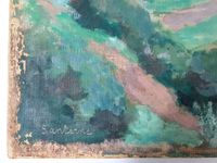 Robert SANTERNE (1903-1983) "Le village montagneux" Huile sur toile, signée en bas à gauche. Dimensions : 65 x 81 cm. (Non encadrée) (Manques de matière)