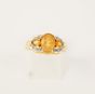 Bague deux ors 750 mil. sertie de citrines et de diamants 8/8. (TDD : 53,5). (Egrisures). 3,4 g. brut.