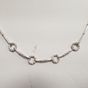 Parure comprenant un collier, un bracelet et une paire de boucles d’oreilles en or gris 750 mil. à maillons briquettes allongés rehaussée d’anneaux et barrettes intercalaires diamantés. (Longueurs : 420 mm, 195 mm et 20 mm environ) (Egrisures, pierre manquante au niveau d’une boucle). 19,3 g. brut.