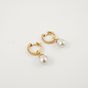 Paire de mini créoles en or 585 mil serties de diamants brillantés à pampilles amovibles retenant une perle de culture grise (diamètre des créoles : 1,7 cm, hauteur avec la pampille : 3,3 cm). 8,4 g brut.