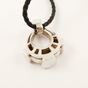 Pendentif ajouré en or gris 750 mil à motifs sertis de diamants brillantés sur cordon de soie noire à fermoir en or gris 750 mil (longueur : 40,5 cm ; dimensions du pendentif : 2,4 cm x 1,8 cm). 10,2 g brut.