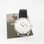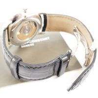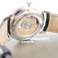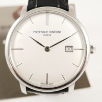 Montre-bracelet d'homme en acier, boîtier rond (Diam : 40 mm), cadran argenté à index bâton et guichet dateur, tour de bras en cuir, Frederique CONSTANT, mouvement automatique, dans son écrin, sa surboîte, son livret et sa garantie.
