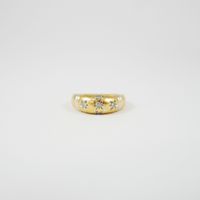 Bague jonc en or jaune et or rhodié 750 mil ponctuée de diamants tailles brillant et 8/8 en serti étoilé. (TDD : 52). 3,9 g. brut