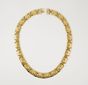 Collier semi-rigide 2 ors 750 mil à maillons parenthèses. Fermoir à cliquet et huit de sécurité. (Tour de cou : 46cm ; Largeur : 1,5cm environ). 70,1 g.